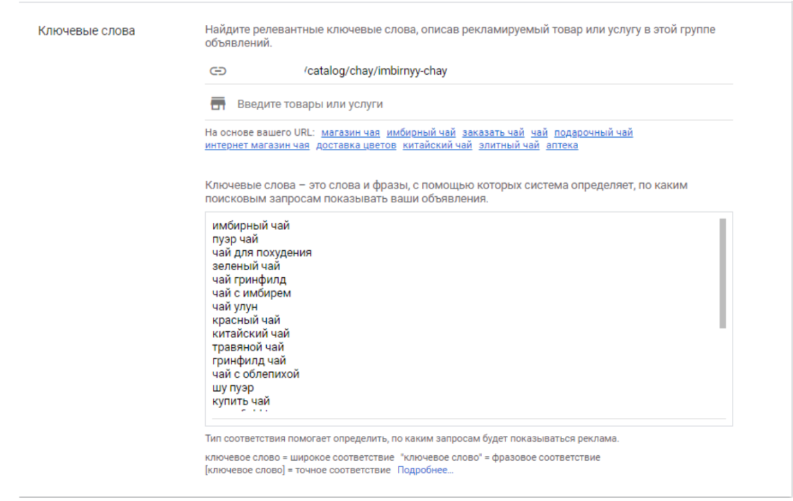- Точное соответствие определяется по запросам, имеющим то же значение, что и ключевое слово.