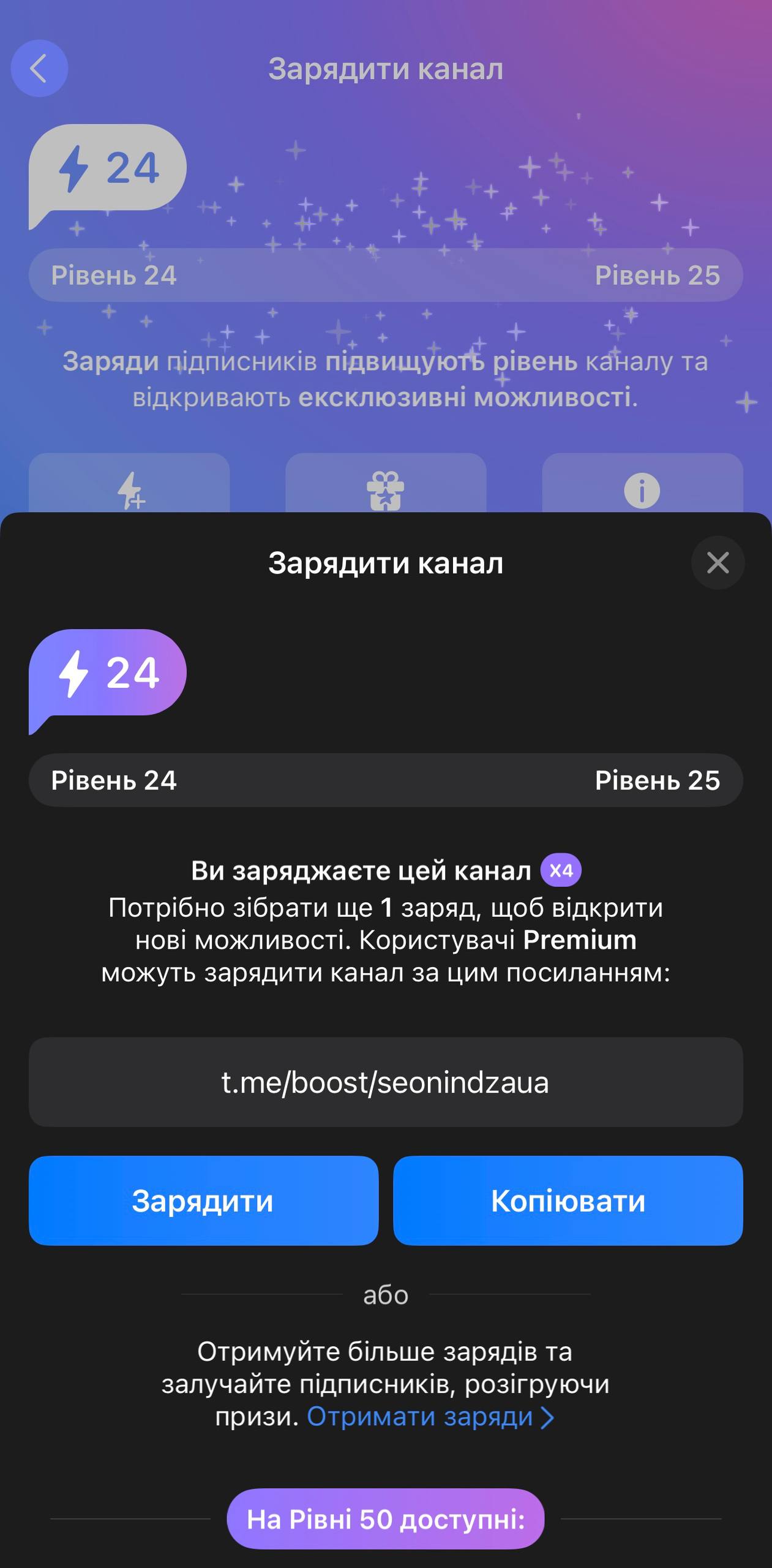 Telegram Boost – Посильте свій канал зарядами | Просування на 30 днів