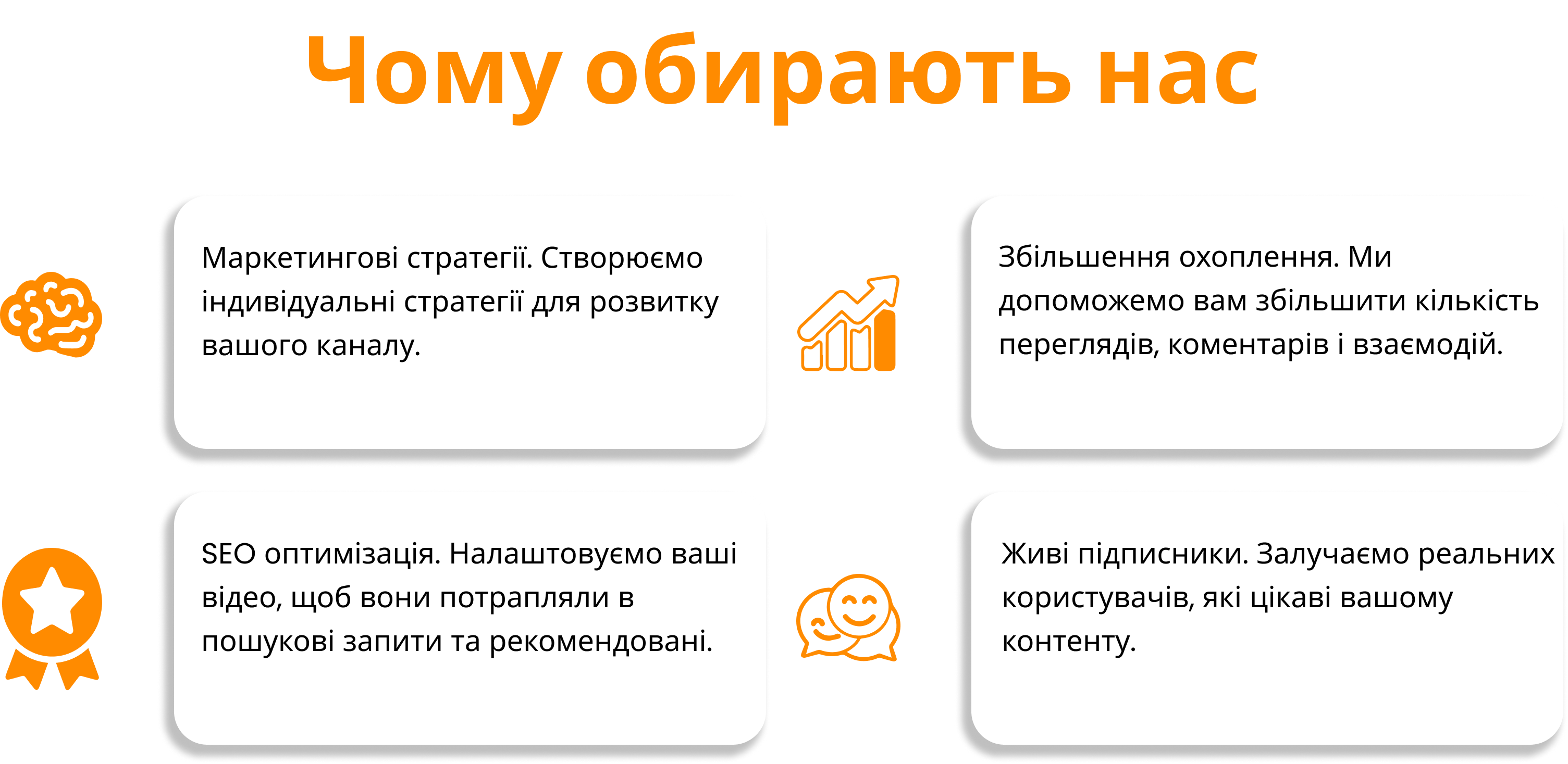 YouTube Music вимагає специфічного просування: тут важливі прослуховування та потрапляння у плейлисти/рекомендації. Ми враховуємо алгоритми музичних каналів.